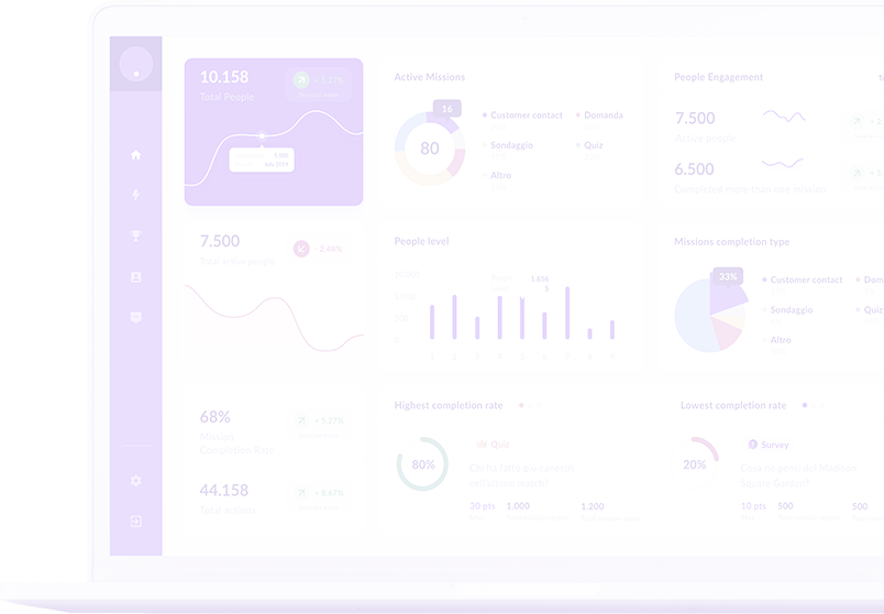 Un motore di meccaniche di gamification, punteggi, leaderboard e reward che genera un progressivo coinvolgimento e una profilazione sempre più approfondita dell’utente.